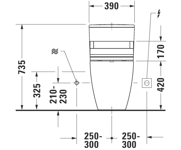无缝冲水, 美式座便器, 加长型带虹吸喷头, 305 mm/12" 坑距, 垂直出水, 适用于 SensoWash® Starck
