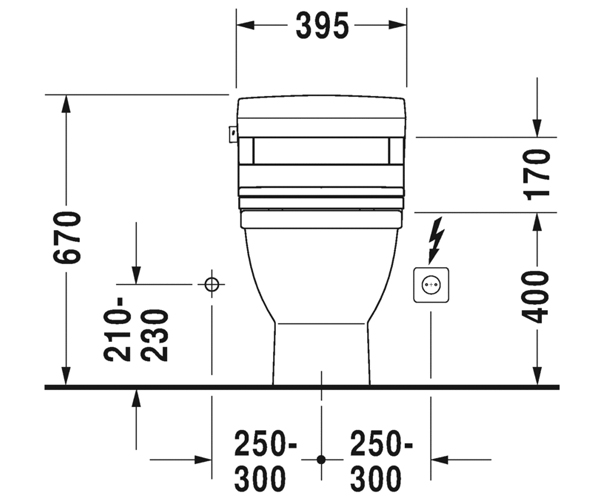 型号 212001 美式座便器, 适用于 SensoWash® Starck, 加长型带虹吸喷头, 305 mm/12" 坑距, 带单冲水装置,带侧面提拉杆, 3"/80 mm 挡板阀, 垂直出水, 1.28加仑/冲 (4.8升) 附加信息 适用于SensoWash®电子座便器座圈,请见xxx页。 Philippe Starck 设计 尺寸:370 x 715 mm 可变形式 ©2120010001
