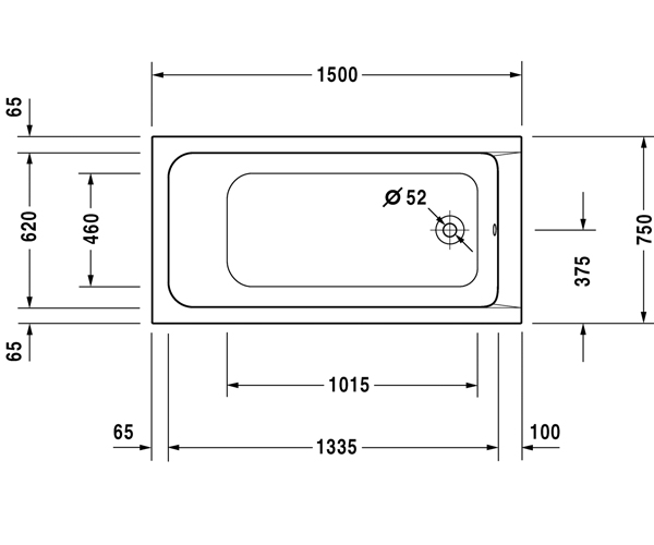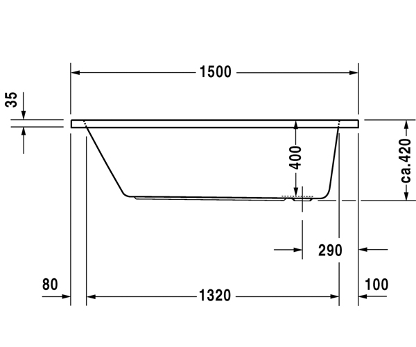 1700 x 750 mm矩型, 带一个倾斜靠背, 出水口位于脚部, ´卫浴亚克力