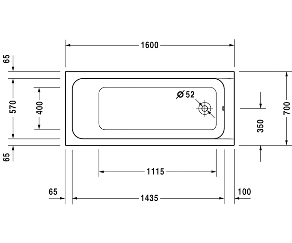 1500 x 750 mm矩型, 带一个倾斜靠背, 出水口位于脚部, ´卫浴亚克力