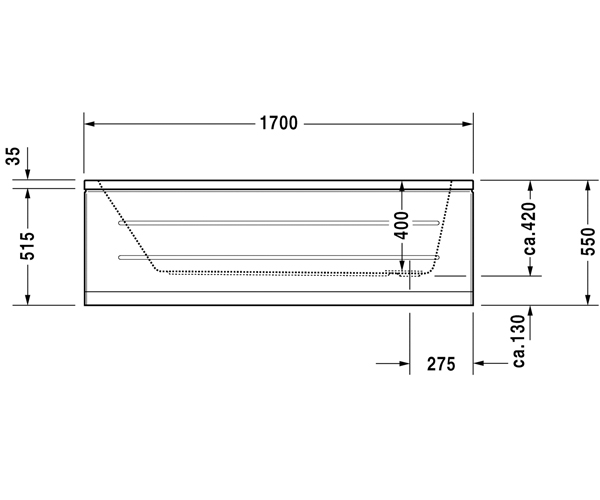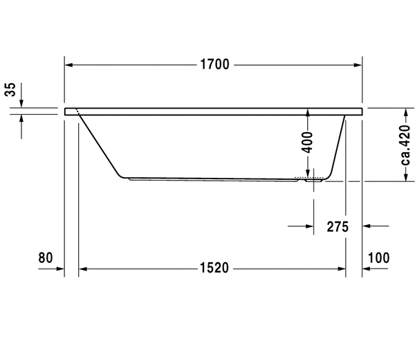 型号 700098 矩型, 嵌入式, 带一个倾斜靠背, 出水口位于脚部, ´卫浴亚克力 sieger design 设计 尺寸:1700 x 700 mm 可变形式 基本型号 700098000000000