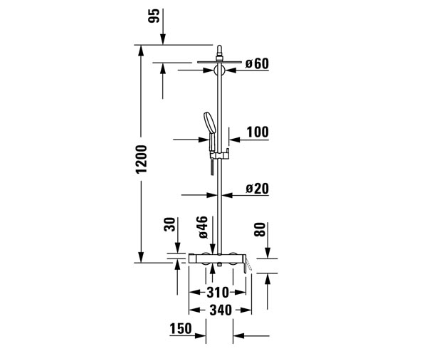 陶瓷混合系统, 连接件尺寸 DN15, 软管连接件 DN15, 流率 12,8 升/分钟 (3 bar), 花洒喷头角度可调调节, 高度可调节的手持花洒柄, 连接软管内有止回阀, 伸出长度350mm, 包括:包括淋浴软管1600mm,,手持花洒air Ø 120 mm,淋喷头 Ø 240 mm, 推荐在压力 3-5 bar下进行操作, 1200 mm