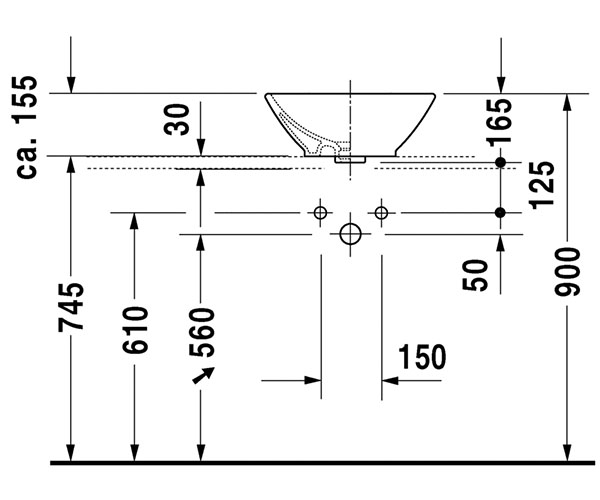 Happy D.2 台上式脸盆 2315600000 下表面磨光, 有溢水口, 有安装龙头台, 背部...