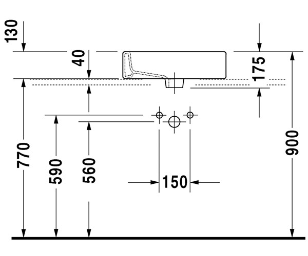 型号 045250 下表面磨光, 有安装龙头台, 背部磨光, 包括配件, 500 mm 附加信息 * 当使用虹吸管时请根据技术参数来确定排水口中心到地面的高度, 要求安装时离墙面保持一段距离 Duravit 设计 尺寸 500 mm