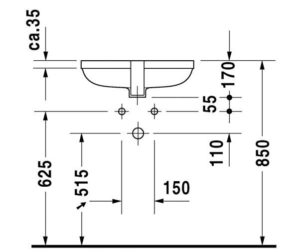 台下式脸盆, 有溢水口, 无龙头安装台, 包括镀铬溢水夹, 包含安装木质台面配件, 480 mm 附加信息 台下式脸盆尺寸指的是脸盆内部尺寸 sieger design 设计 尺寸 480 mm 可变形式 • 没有龙头孔 0457480000