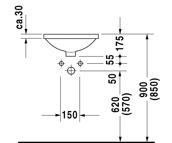 DuraStyle 嵌入式脸盆 0372600000台上式脸盆, 无溢水口, 无龙头安装台, 600 ...