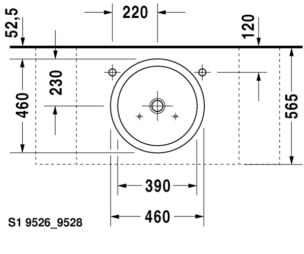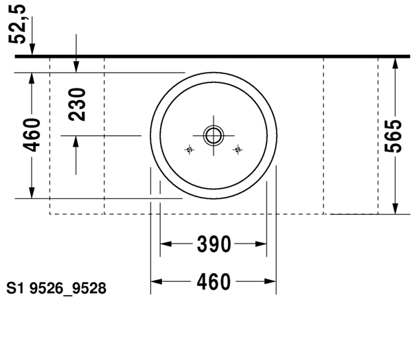下表面磨光, 无溢水口, 包含配件, 无龙头安装台, Ø 460 mm