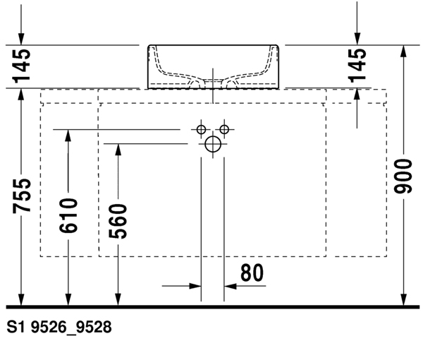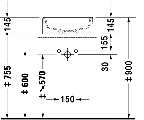 DuraStyle 嵌入式脸盆0374620000 台上式脸盆, 有溢水口, 有安装龙头台, 615 ...